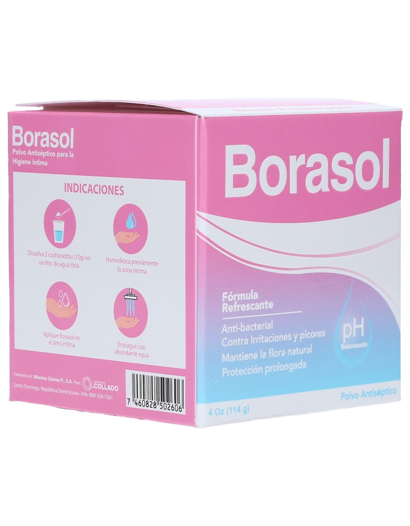 Borasol Poeder Nuttig voor het wassen en verfrissen van de vagina, oksels en voeten. Word vooral gebruikt als verfrissende en reinigende vaginale douche. Goed tegen klachten die veroorzaakt zijn door irriterende stoffen, chemicaliën, zepen, wasmiddelen, huidinfecties, irritaties door scheren, jeuk, huidonstekeningen als gevolg van allergiën en andere huidaandoeningen.